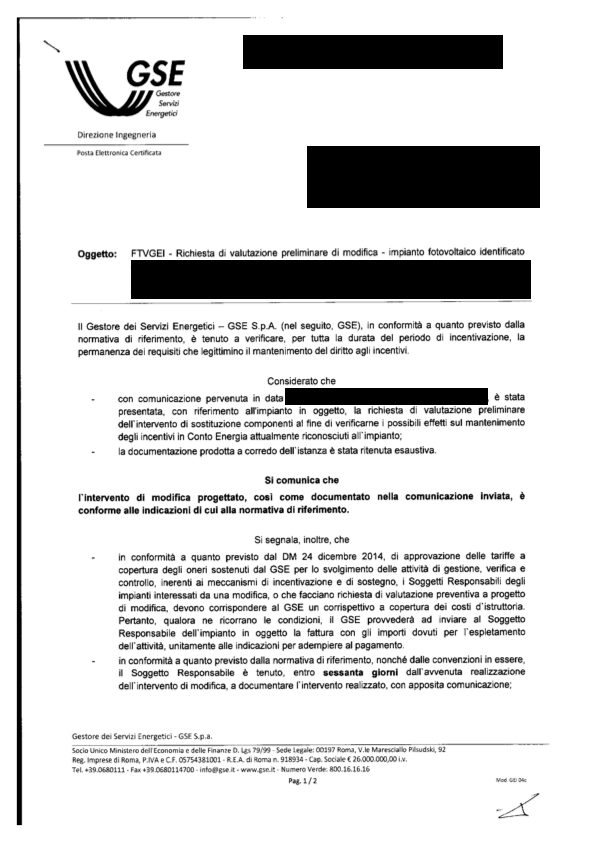 In questo caso specifico è stato necessario effettuare una specifica richiesta preventiva. Il riscontro è stato positivo da parte del GSE.
