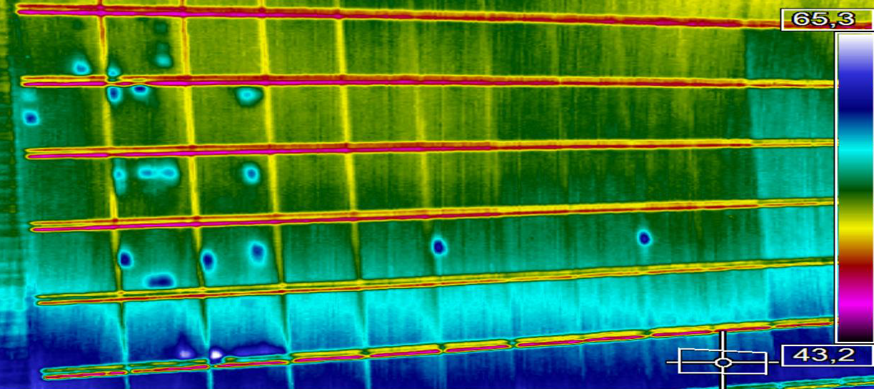 Dopo aver attivato il nostro metodo e riscontrato una produzione di energia calante rispetto a quanto stimato si è proceduto con la verifica termica dei pannelli. Durante l’analisi con il drone sono stati individuati molti hot spot su vari pannelli.