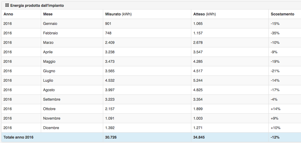 Sono stati sostituiti i pannelli danneggiati. Si è riscontrato un netto aumento della produzione a partire dal mese di Settembre, grazie a SunReport è stato possibile quantificare l’aumento sia in percentuale di produzione che in ricavi economici.